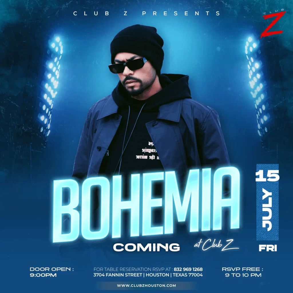 Breaking news for the Houstonians as you guys will be happy to know that we are bringing the maestro Bohemia – King of RAP at your favorite go-to spot, none other than Club Z.