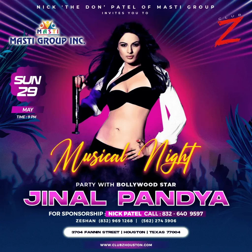 Club Z has some good news for Houstonians as Club Z is upholding a musical night with Bollywood’s and Tollywood’s “The Femina Miss India – Jinal Pandya”.
